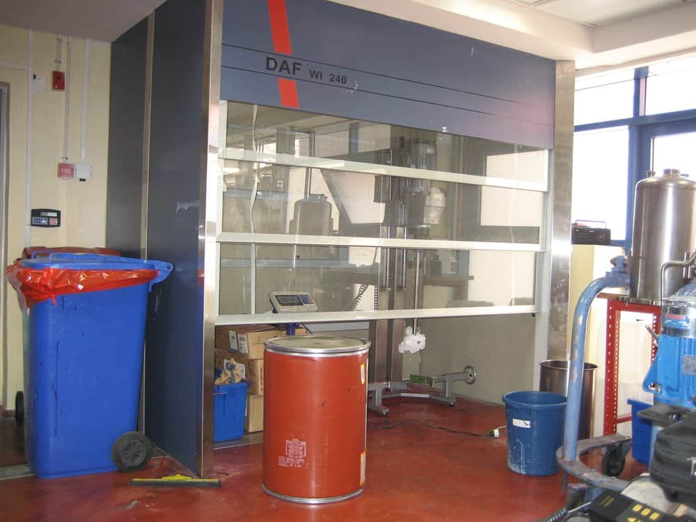 A chemical walk-in safety hood/cabinet for processing powders at HP Ltd.