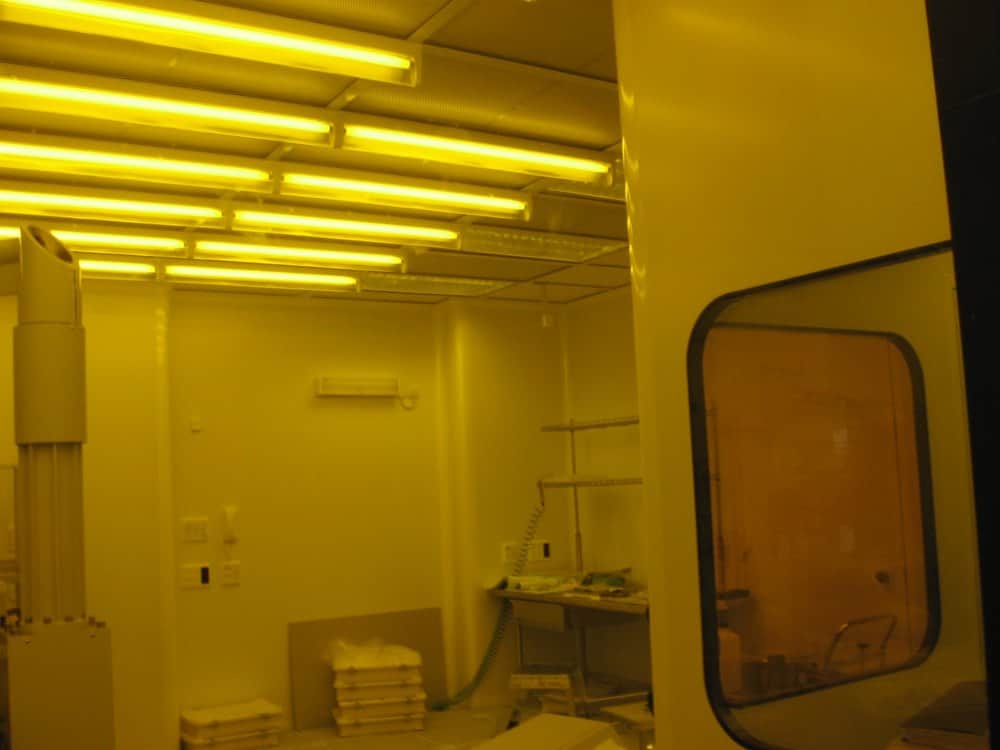 The “yellow” clean rooms as photographed from the ‘unclean’ corridor.