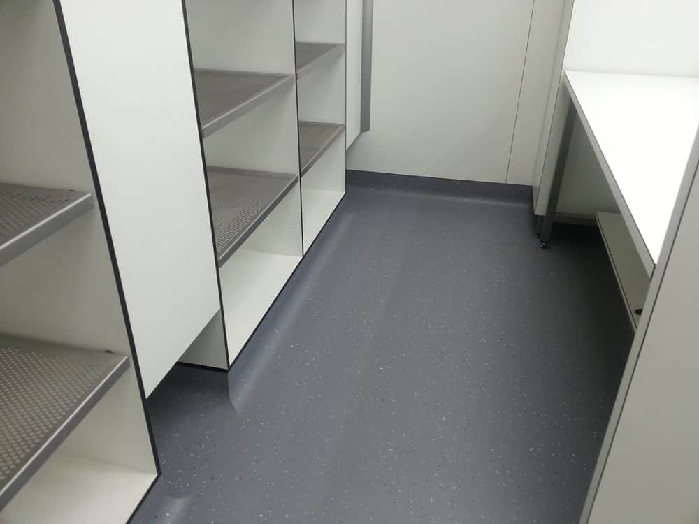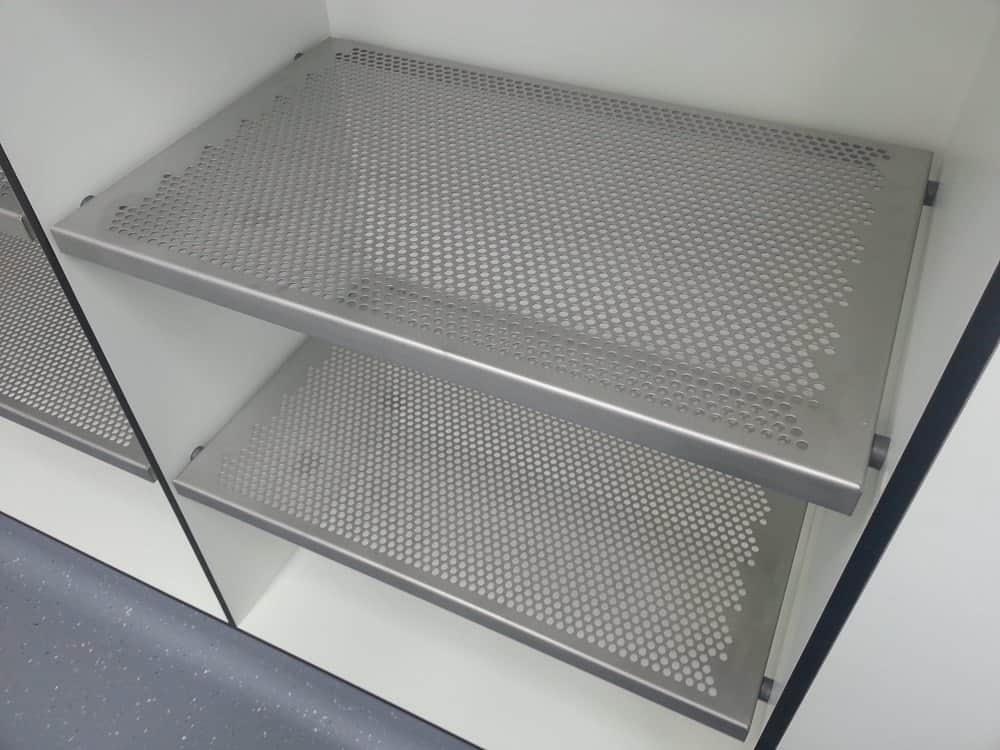 Designated storage areas for the clean room (perforated and active ventilated shelves)