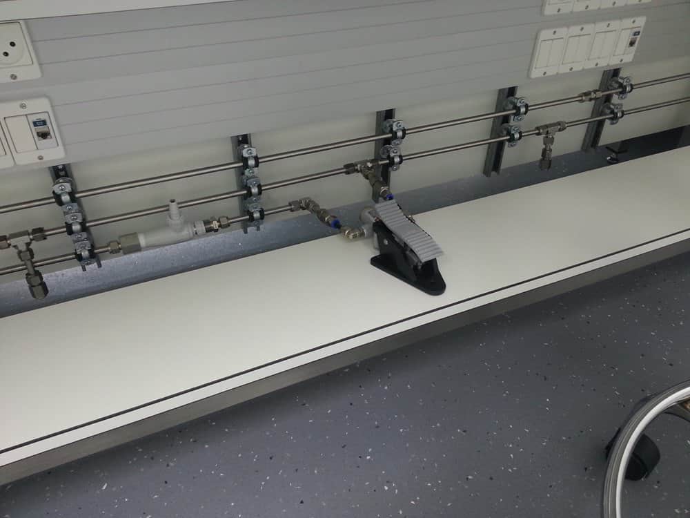 The clean room, the preparations lab, the laminar flow chamber and the transfer chamber are constructed as a single integral unit with a transfer room and a changing room for the employees constructed on the other side of the room.